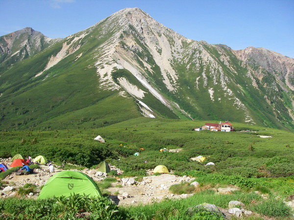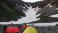 テント場5:00→黒部五郎山頂経由、黒部五郎小屋10:30→三俣小屋テント場15:00
