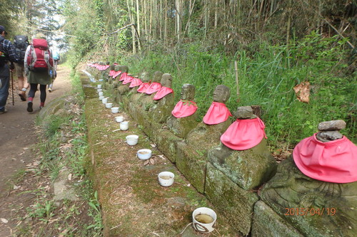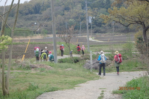 道は渓流に沿って下ってゆく。途中には大小さまざまな滝があったりして変化に富んでいて楽しい。1時間余りで出発点の小田休憩 所に戻った。にぎやかな山行も無事終わり、2時すぎ一路印西に向け出発した。歩く距離は短かかったが、変化に富み、大人から子供 まで全員大満足の春の山旅でした。