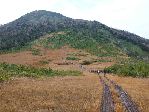 シャングリラ・ラ恒例の「紅葉と温泉を楽 しむ」山行。今回は、1日目は会津の名峰田代山、帝釈山に登り,桧枝岐の「尾瀬野」に宿泊、翌日は会津御池登山口から燧 ケ岳を登りました。幸い両日とも好天に恵まれ、今回の3大目的である「登山」、「温泉」、「うまい酒」を貫徹しました。 紅葉はイマイチでしたが、代沢田代、熊沢田代など広々とした草紅葉の中の木道歩き、燧ケ岳からの尾瀬沼、尾瀬ヶ原の眺望 など、秋の尾瀬を堪能しました。