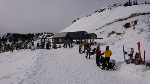 15日6:00 NTを車発。メンバーをピックアップして外環、関越を走る。土曜日とあって関越は渋滞気味。沼田インターで降りて川場スキー場に向かう。スキー 場手前の第四駐車場に停めさせられ、そこからシャトルバスでスキー場に着いた。昨年遭難者が多発したため登山者はコ コヘリの携帯が義務付けられた。持ってない人はレンタルをしなければならず、リフト代と含めて3100円となる。