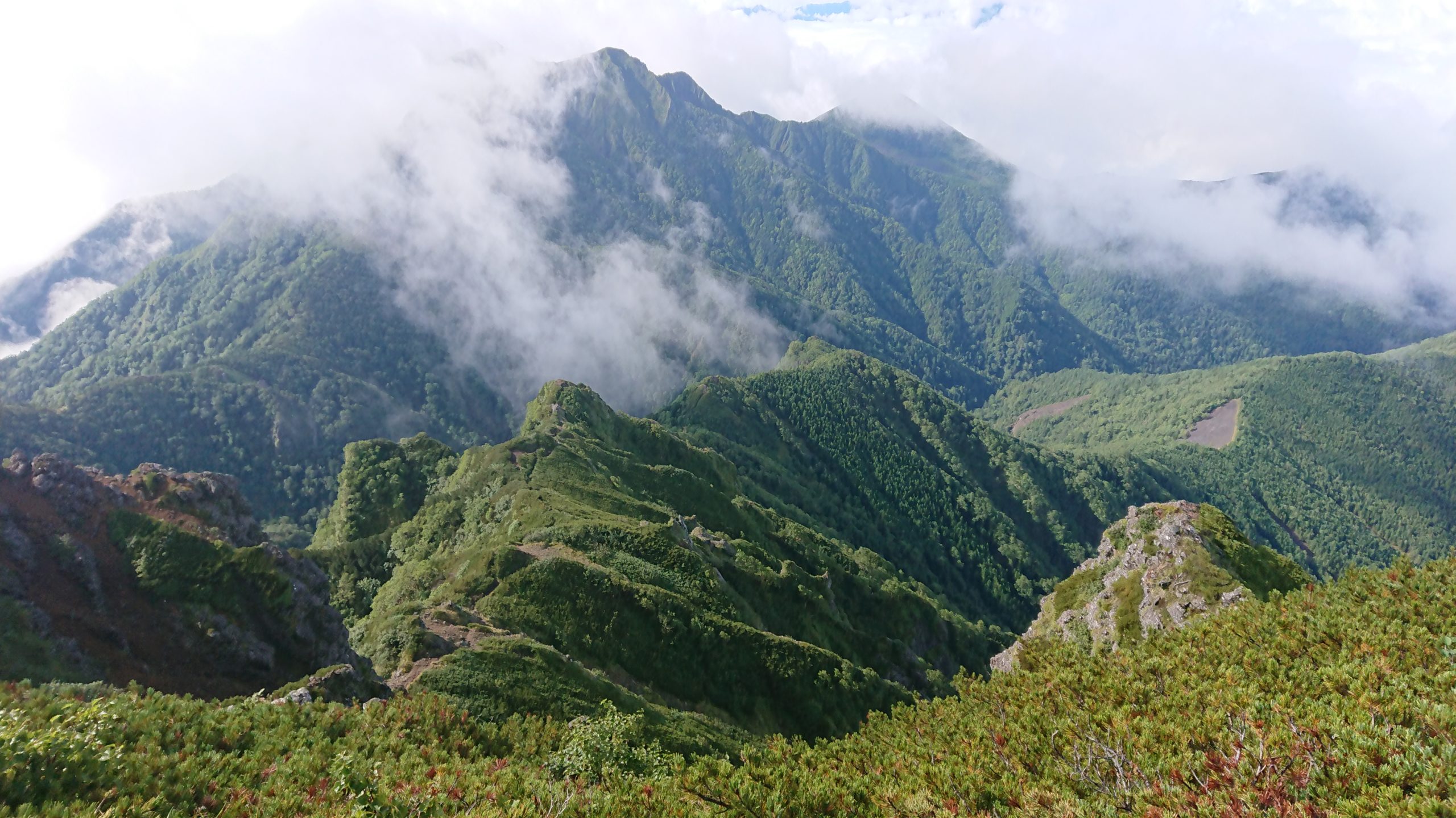 コースは変化があって面白いが、天気が悪く眺望がほとんど無かったのは残念。カクさん、アオさんとも足が速く、登りでも下りでも付いていけなかった。