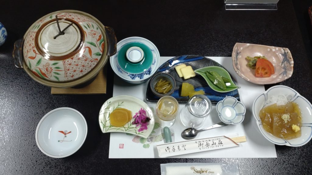 6月18日 日向和田駅から歩き出す。ゴルフ場(ミニ)の横から山に入るがしばらくは急登 尾根に出てアップダウンを繰り返す。うぐいすの声をよく聞くのはここが青梅のせいか。高曇りの樹林帯で風が無く、汗をかいても蒸発しないのでベタベタになる。高峰山、龍のひげと尾根通しに登る。最後の日の出山へは左の巻道に入ったが、最後の登りが細かい木段となり消耗する。日の出山でも遠くは見えない。早々に御岳山荘に向かう。山友と合流して風呂で汗を流し、冷たいビールですっきり。夕食は宿坊の料理 その後は持ち込んだお酒で山の話にふける。