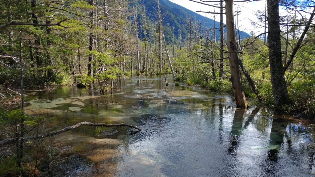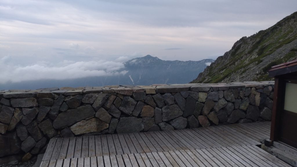 8月9日 朝NT発 7:15バスタ新宿発のさわやか信州号で11:50に上高地に着いた。レストランで昼食後に歩き出す。2800mより上は雲がかかり山頂は見えない。夏休みとあって徳沢は家族連れテントも多い。15:20に横尾山荘に到着した。風呂に入り初日の汗を流す。夕食も客の間隔をとってあり二段ベッドでゆっくりと寝ることができた。