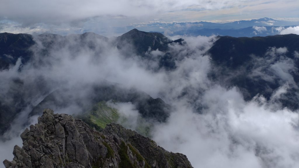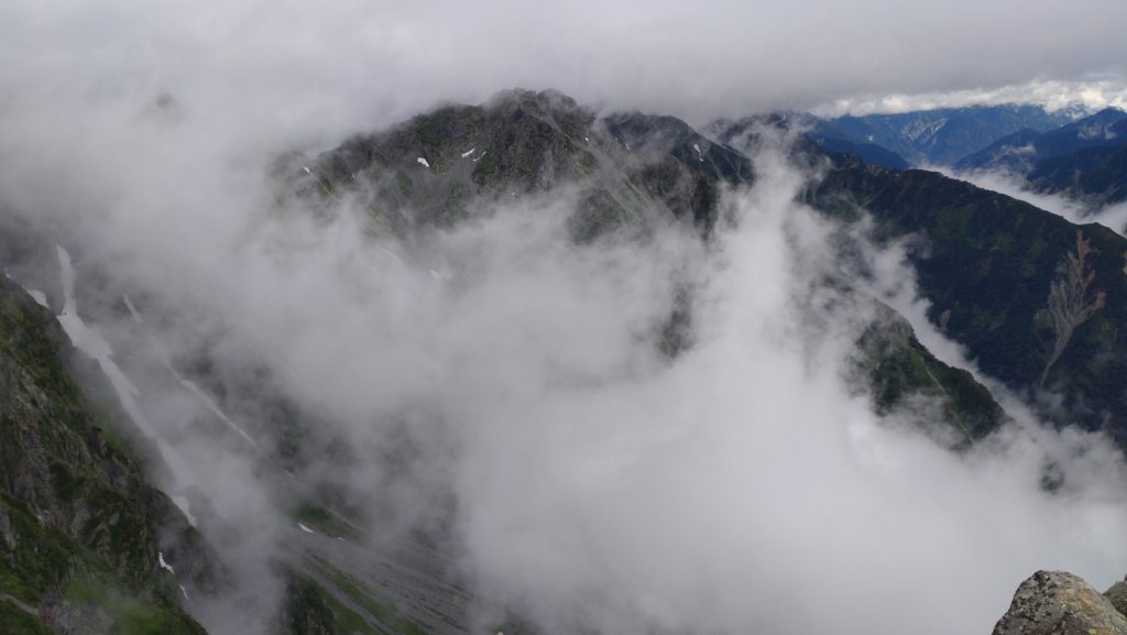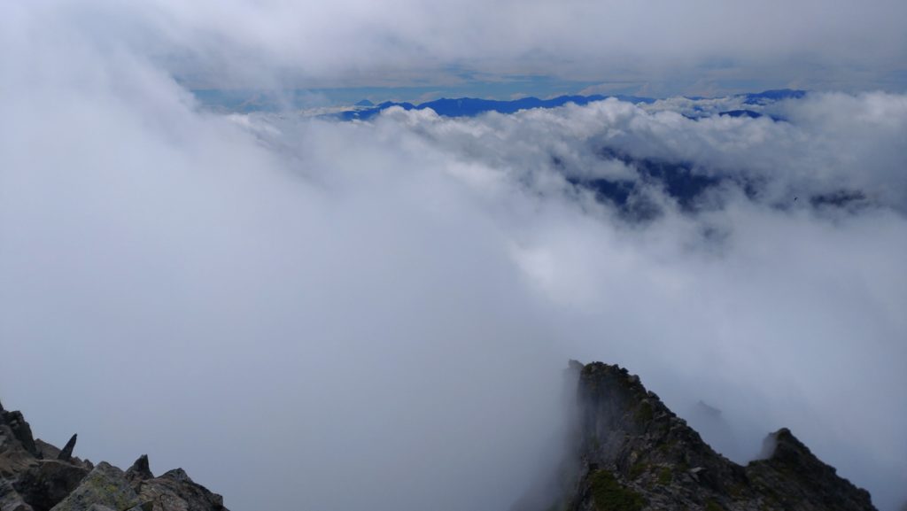 奥穂からの展望は見られなかったが前穂からまあまあ見えたので良しとしよう。それにしれもアオさんは強い。