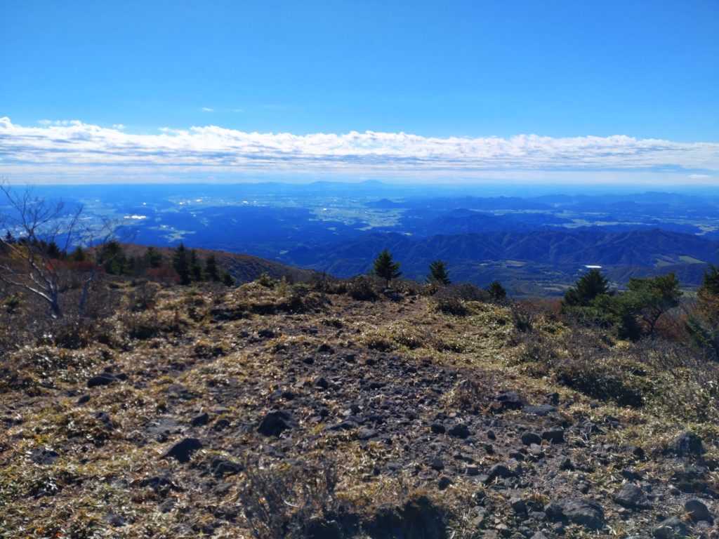 21日朝食は7時 7時40分に車発 途中で女性陣は喜んで大根を買っていた。八方ケ原に向かい大間々駐車場に到着 見晴らしコースを登る。稜線は見晴らしが良い。剣ヶ峰で大入道の分岐を確認後 釈迦ケ岳に向かう。緩やかなアップダウンを繰り返した後で岩場と泥壁の急登を越えて釈迦ケ岳に着いた。その名の通り釈迦の石像がおいてあり、鶏頂山は目前である。やはり男体山方面は雲で見えない。昼食後に剣が峰に戻り大入道に向かう。尾根道であるが踏み跡が薄い。大入道から小間々駐車場に向かうが下りが広い斜面で落ち葉で道がわからない。YAMAPで道を確認しながら下る。沢を渡り尾根を巻きとYAMAPと首っ引きで下り小間々駐車場に着いた。メンバー5人を駐車場に残して運転役2名が大間々駐車場に戻り、車を回収して帰宅した。