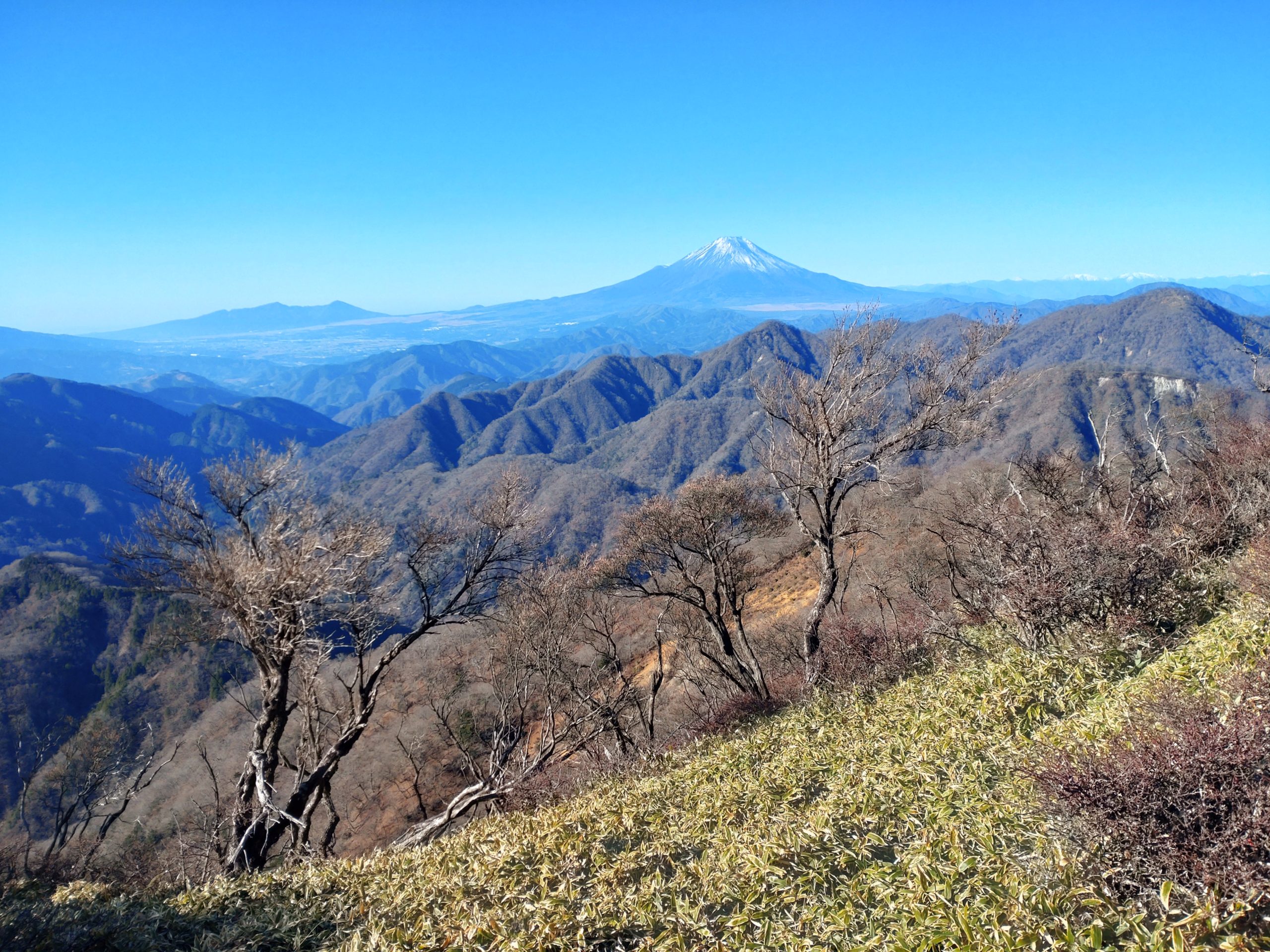 小屋の朝食が7時とのことで4時半に起床して朝食を自炊する。お決まりの餅入りカップ麺。朝すぐにストーブをつけてくれたので暖かい。ヘッドランプを点けて5:50出発。6:15に塔が岳に着いて日の出を楽しむ。丹沢山を過ぎて不動の峰に向かう。不動の峰休憩所が新設されていた。宿泊禁止らしいが床にマットをひけば数人は楽に泊まれそう。蛭が岳でゆっくり休憩した後、丹沢山、塔が岳から大倉尾根を下山する。堀山の家、駒止茶屋、見晴茶屋で休みをとりながら大倉に下山した。大倉尾根も下部は紅葉がきれいであった。16:38のバスで渋沢駅に行き、17:13の小田急で帰宅した。
