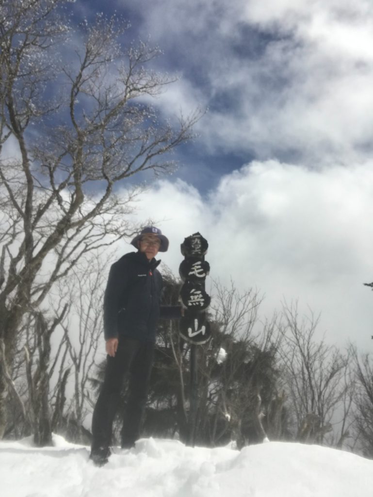 毛のない田中陽紀さんがNHK番組「グレートトラバース」で毛無山に登り、頭をを見せながら「毛無山ー!」と叫んでいたのを見て、いつか行きたいと思っていた。2日前に雪が降り、道路状況が心配だったが、さすが観光地だけあり、しっかりと除雪されており問題なく、登山口駐車場まで車で入ることができた。駐車場脇のゲートから登山を開始した。ほとんど直登気味の道が続く。初めの内は雪は目立たなかった。毛無山はあまり展望がないが、途中に富士山展望台という場所があり、そこからは本栖湖、富士山から駿河湾、伊豆半島まで見渡すことができる。この日は富士山は頂上近くは雲に覆われていた。また、滝をみおろす滝見台という場所もあり、滝を見て、一息つける。1300Mあたりから雪が目立ち始めたのでアイゼンを着けた。頂上までロープの箇所もあり、注意して登った。3時間33分で頂上に到着した。頂上は雪に埋もれていた。ところが、頂上より高い「毛無山最高地点」という場所が地図上にあり、10分くらいなので行ってみることにした。ここからは山のへりを歩いて行く感じで、景色が良いが、滑落しないよう、景色を見たい時は歩かずに止まって見るようにした。最高地点は大きい岩の上で、この岩があるために最高地点であるようだ。下は来た道を戻り、14時46分に下山した。