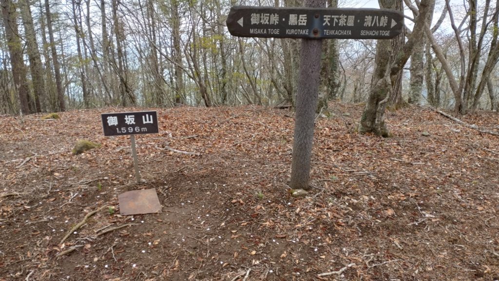翌日は5:30に朝食をとって6時過ぎに出発する。日の出前は富士山全景が見えていたが、日が出ると雲が出て富士は見えなくなる。御巣鷹山から急な下りの後はアップダウンを繰り返して清八山へ。清八峠まで行って本社ケ丸の登山道と繋ぐ。清八山から八丁山に向かうが途中で笹子峠への分岐がある。御坂峠は表示が無く天下茶屋への道標があるだけ。御坂山山頂は広く巨木が多くある。旧御坂峠に下ると御坂茶屋跡に廃屋がある。黒岳に向かう途中で本日初めて4人組とすれ違った。黒岳から少し南の展望台に行ってみたがやはり富士は見えない。すずらん峠、破風山を越えて新道峠に着く。ここには展望テラスが2ケ所あり山梨側から遊歩道がつけられていた。新道峠からの下りは最初は道幅が狭い急斜面のジグザグで、ちょっと危ない。少し下ると道幅も広くなったが、植林された樹林の下りで展望はない。林道に出た所に案内板があった。ここから大石公園までは林道を下る。別荘地の中を通り中沢橋を渡ると大石公園のバス停に着いた。ちょうど周遊バスが来たので飛び乗るが観光客が一杯である。河口湖駅も観光客が多く半分以上は外国人であった。15:56発の富士急で帰路についた。 マコミズ単独