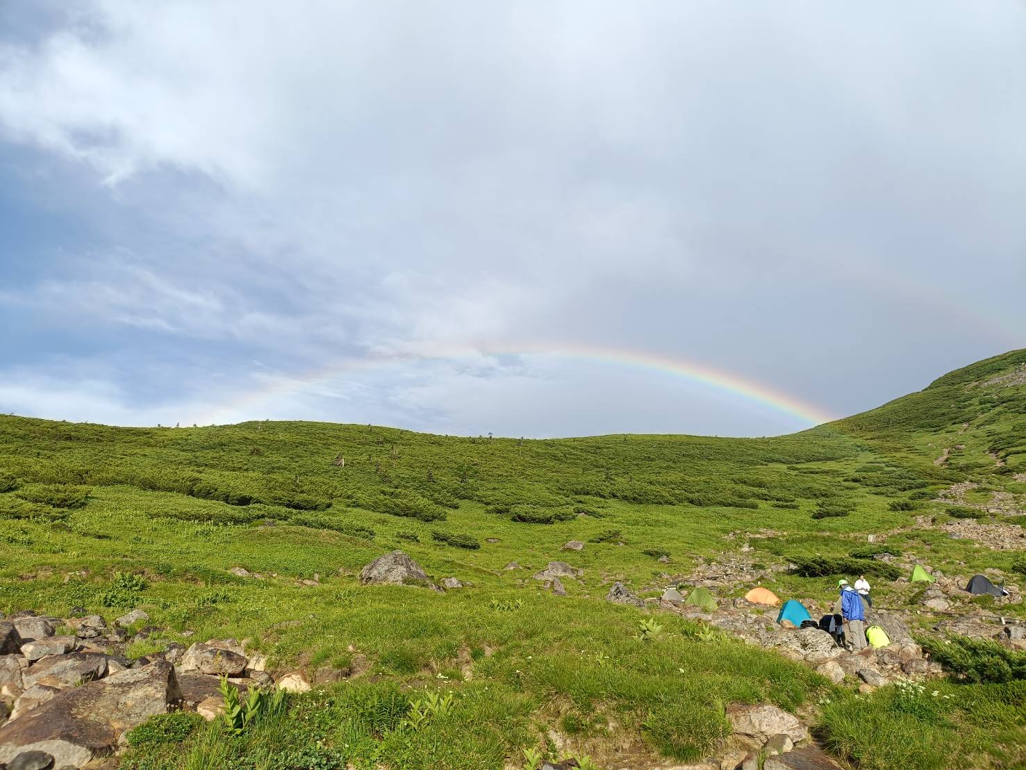 *双六岳からの下山時に雷そして最後は大粒の雨に見舞われ一時はどうなることかと思った。幸い1時間ほどで止み、テント場は砂地なので水はけも良く全く問題なく張れた。