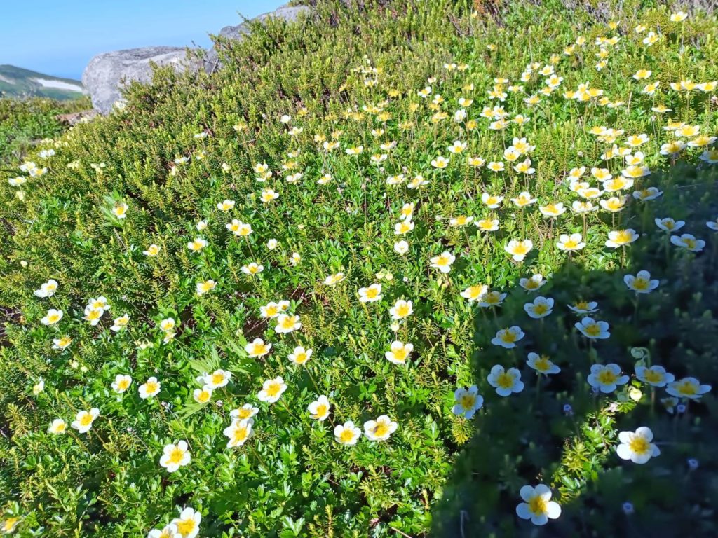 7/24 5:40薬師沢小屋発 8:24アラスカ庭園 9:38雲の平山荘 10:21雲の平キャンプ場(テント泊)