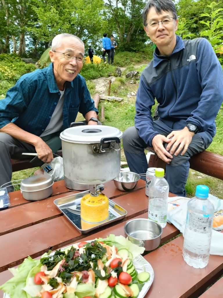 本年の夏合宿は南アルプス白峰三山をテント2泊、山小屋1泊の3泊4日で行く予定であった。初日は晴れて御池小屋でテント泊できたが、深夜から激しい雨となり、2日目は雨、強風のためテント泊をやめて北岳山荘泊に変更した。3日目、4日目は天気も良く白峰三山縦走を完走することができた。