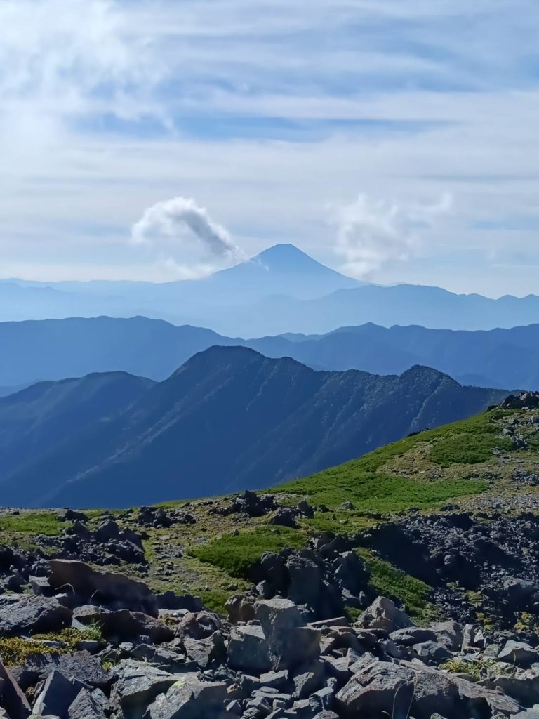山荘を夜明け前の4時に出発。ここから高度3000mを超える日本屈指の縦走路が始まった。中白根岳、間ノ岳、西農鳥岳、農鳥岳を越えながら、甲斐駒ヶ岳、北岳、仙丈ケ岳の雄姿を見ながら本当に気持ち良い縦走路だった。農鳥小屋に立ち寄ったが、感じの良い好青年が番を務めていた。農鳥岳を越えると、1300mを一気に下るルートとなる。岩が転がる苦行のような道だった。大門沢の音がしても小屋にはなかなか辿り着かず、疲労もピーク。遅くなってしまったため、バンビさんが先行して小屋の受付を済ませてもらった。私が特に遅かったので、罪悪感を感じながら小屋に着いた。小屋食もほとんど喉に通らず就寝することとなった。
