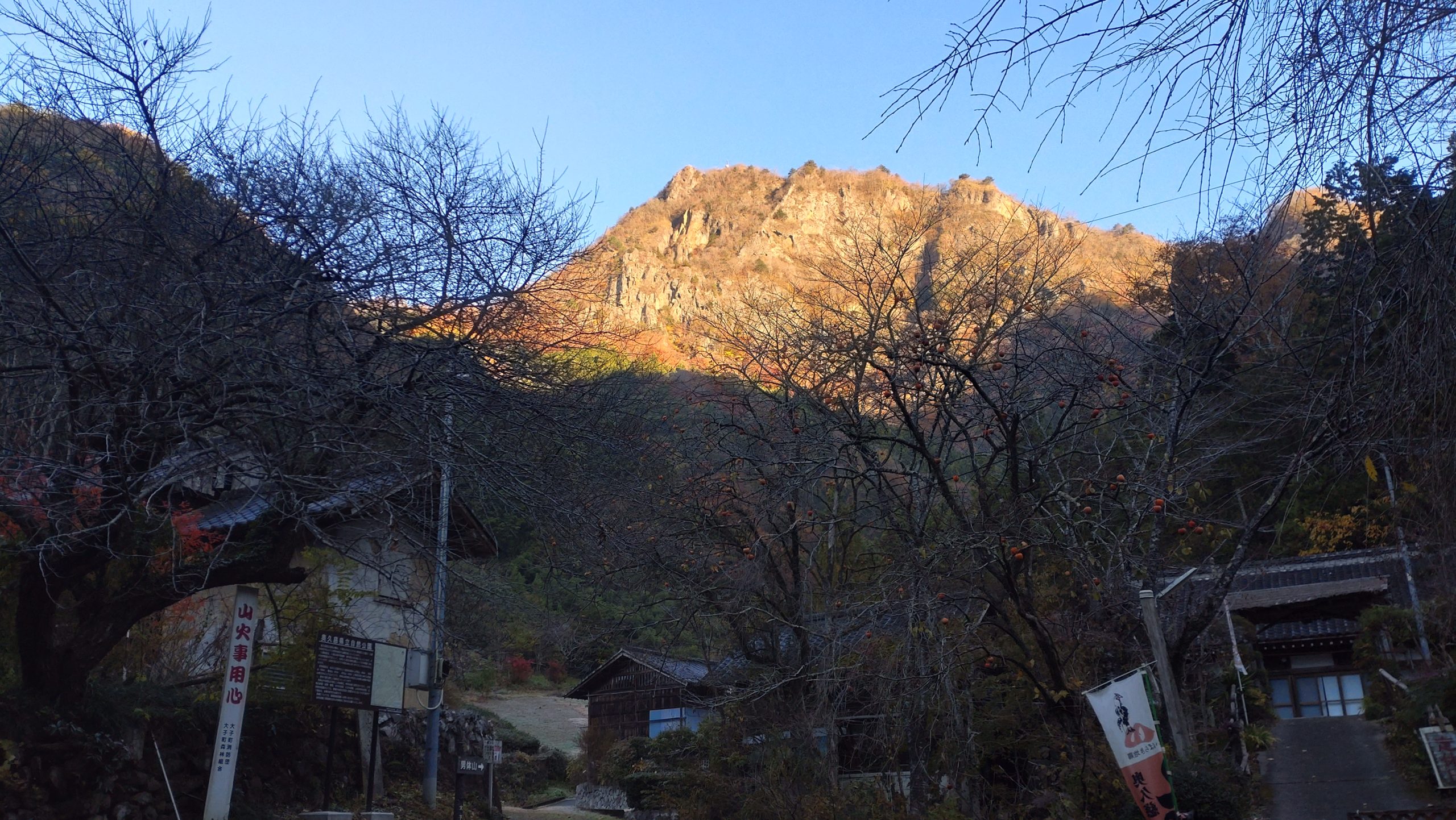 5:15自宅を出て7:30に大円地駐車場着 5台止まっていた。快晴のなか健脚コースを登る。昔はもっと簡単に登っていたのに鎖場がきつい。山上部は紅葉が終わり枝だけになっている。山頂からは筑波山、日光男体山が見えた。大円地越えのあたりは紅葉がさかりである。鷹取山に向かう縦走路に入り裏縦走路分岐から笹の中の道に入る。岩が落ち葉で隠れて足元に気を付ける。最初の分岐は間違えずに右に折れたが、次の分岐で尾根を直進してしまい分岐まで引き返す。進む方向確認をしなければと思いながら、最後のピークで左の尾根に笹の中にはっきりとした踏み跡を見つけ、そっちに行ってしまった。踏み跡がうすくなった所で確認したら間違いがわかり、ピークまで引き返す。最後のピンクテープから篭岩山に向けて急斜面の灌木帯を下るが右に行きすぎ、不安定な斜面を左にトラバースしてピンクテープを見つけ籠岩山登山道に出た。裏縦走路だけで2時間かかってしまった。釜沢越えに向かうが足がつり気味。鷹取岩までは急斜面と岩場とアップダウンできつい。鷹取岩からは坊主岩と男体山がきれいに見える。フジイ越えから左に急斜面をロープ頼りに下りトラバース道に入るが、狭い道とロープ頼りの下りと道を塞ぐ倒木で楽ではない。何とか怪我無く駐車場に戻った。