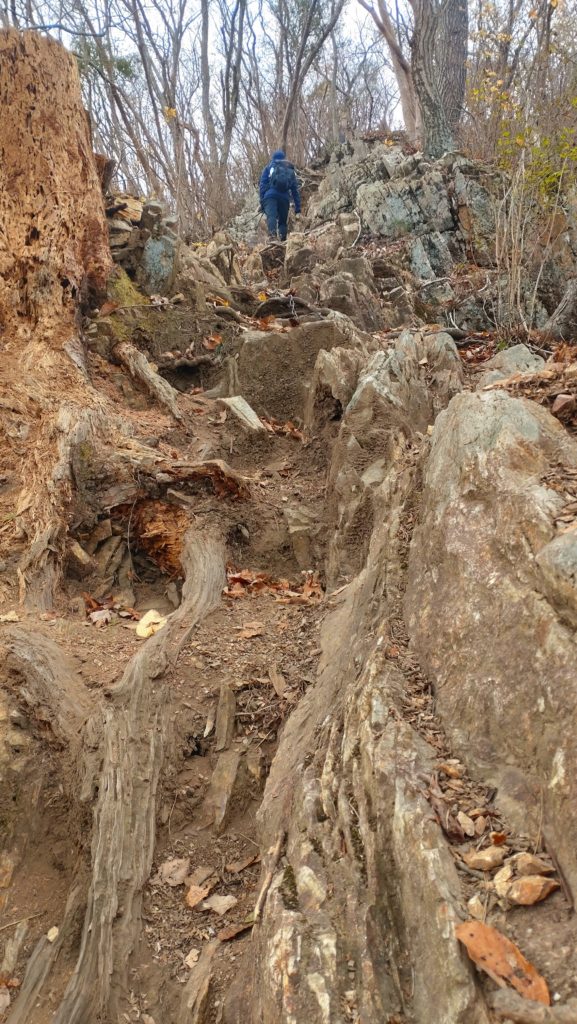 6時自宅発 牛久阿見IC、笠間西IC経由で8時に大川戸駐車場到着 数台の車が止まっている。三回目の今回はタイタニック岩経由で登る。樹林帯を登り尾根に出てタイタニック岩に着いた。岩に立ったがどうも腰がひけている。足尾山を越え岩場を登ると御嶽山に到着。さらに尾根を進むと猪転坂の急登になるが、しっかりした階段になっている。だらだらした尾根のアップダウンを繰り返して雨巻山に到着した。早速ベンチで山頂うどんを作る。カット野菜、うどんスープの素、生うどん、ちくわ、おつまみビーフを入れて出来上がり。この時期は暖かい食事が一番である。少し先にある展望台に行ってみたが景色はあまりよくない。山頂に戻り三登谷山に向かう。三登谷山からは北面の展望が開けるが、遠くはかすんで見えない。しばらく日向ぼっこをしてから大川戸駐車場に戻った。