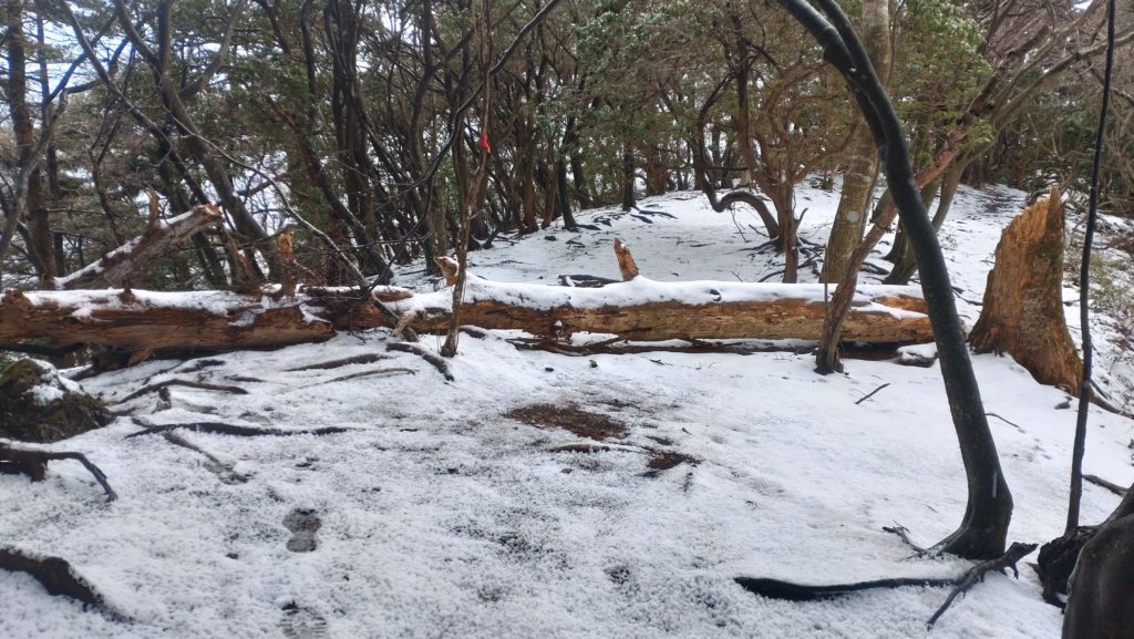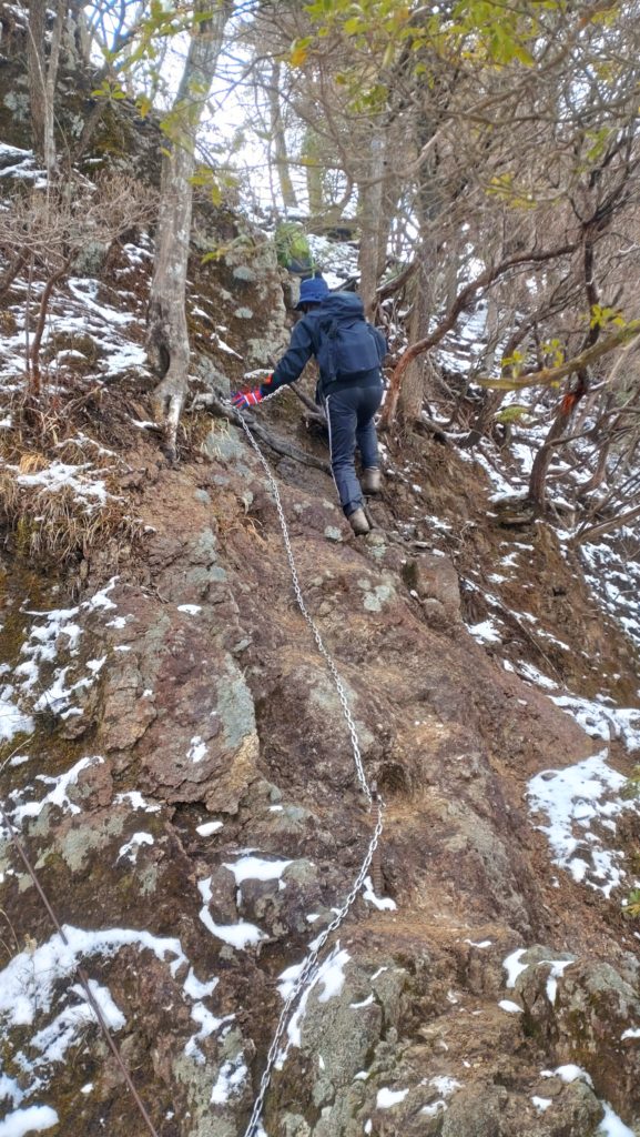 5:06NT発 浅草橋、新宿経由で7:27本厚木着。ここでミスして7:40のバスに乗れず8:40のバスに乗った。9:15煤ケ谷BS着 準備して歩き出す。山道に入り沢沿い道から尾根道になって薄っすら雪の残る主稜線に到着。三峰山に向かうが段々と尾根が細くなり岩と木の根とハシゴと雪で気を使う。三峰山頂は樹木が生えて展望がきかない。早々に大山に向けて出発。相変わらず細い尾根を通って不動尻分岐に着いた。ここから唐沢峠までが地図の点線路で道迷い多発経路である。灌木の中に道らしきものがあり、雪に先行者の足跡が一人分ついている。間違えそうな尾根の分岐が2~3か所ありピンテも少なくYAMAPで確認しながら唐沢峠に着いた。スタートが遅れた分だけ余裕がなく、休憩時間も少なかったせいか足にきている。唐沢峠から大山に向かって5分ほど行ったが、先も雪道であり大山を断念した。唐沢峠に戻って不動尻に下った。不動尻からは林道歩きである。真っ暗なトンネルを抜け16:10広沢寺温泉BSに着いたがバスまで50分時間があるのでさらに先の広沢寺温泉入り口BSに16:22に到着した。16:26の本厚木行バスに乗り本厚木、新宿、浅草橋経由でNTに19:32に帰着した。