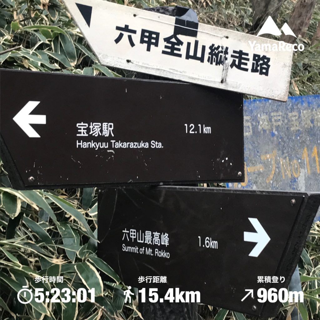 *六甲山全山縦走路は56kmなので、今回歩いたのが43kmで約8割を歩き、2割を残した。しかも、六甲山最高地点を踏むことができなかったのが悔やまれる。近年のうちにその部分を歩き、全山を踏破したいと考えている。六甲山系はひとつひとつの山はそんなに高くないが、降りて登り返すの繰り返しで大変だった。縦走路の途中には時々「○○登山会と表示された小屋があり、都山が盛んなのだなあと思った。神戸の街と港はとても美して活気があった。(やまがく単行)